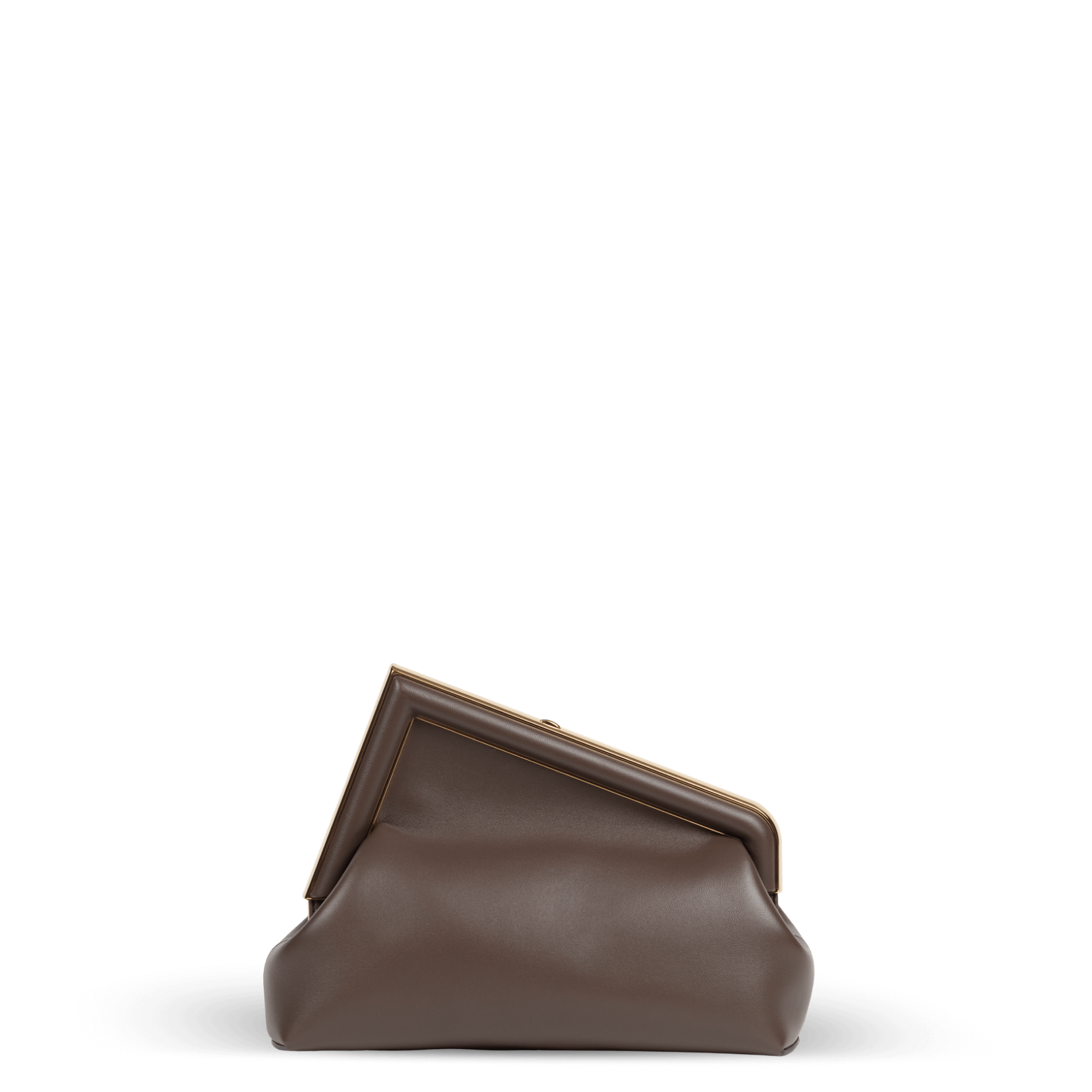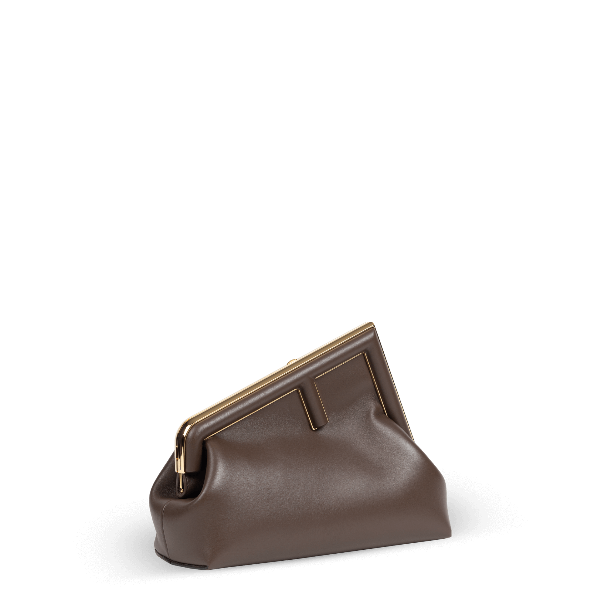 Die Fendi First Tasche, ideal für den Alltag, präsentiert sich in elegantem Braun aus weichem Nappaleder. Die Makro F-Schließe aus Metall ist im gleichen Farbton mit Nappaleder überzogen. Das stoffgefütterte Innenfach zeigt das ikonische FF-Muster, begleitet von abnehmbaren Innenhaken und goldfarbenen Metallbeschlägen. Dank des abnehmbaren Schulterriemens lässt sich die Tasche als Clutch, Schulter- oder Umhängetasche tragen.